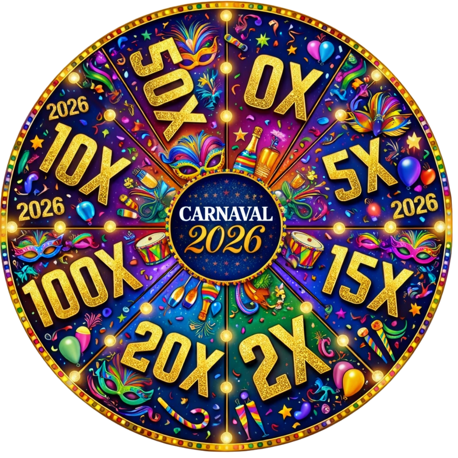 Roleta Principal (Externa): Define o valor base do seu prêmio. Pode variar de 0x até 100x sua aposta!